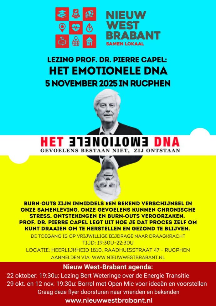Op 5 november komt Professor Dr. Pierre Capel een lezing geven over wat hij 'Het Emotionele DNA' noemt.