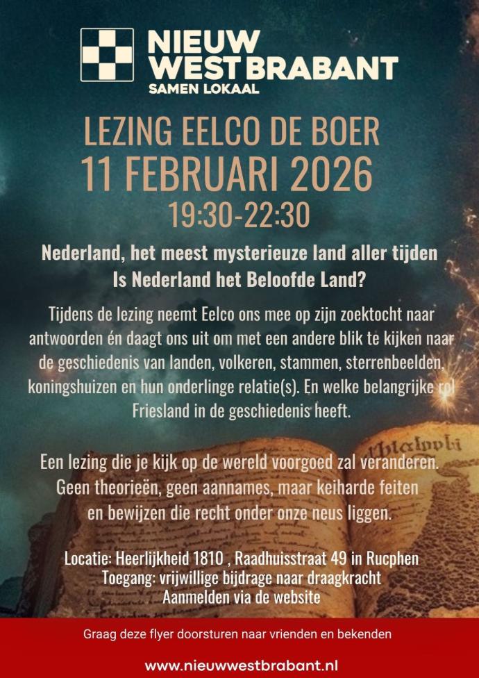 Lezing Eelco de Boer: Nederland, het meest mysterieuze land aller tijden. Is Nederland het Beloofde Land?