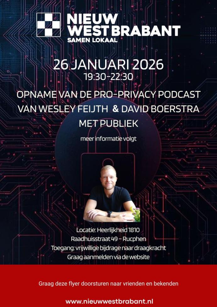 Inschrijving voor Opname van de Pro-Privacy podcast van Wesley Feijth en David Boerstra met publiek